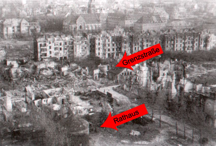 Gleich drei dieser zweigeschossigen Rundschutzbauten aus Mauerwerk mit Stahlbetonabschlussdecke / Zwischendecke wurden konzentriert hier im Bereich Grenzstraße auf Geländen von kleinen Werksbetrieben erbaut. Abgelöst wurden diese Bauten durch die bekannten eingeschossigen Stahlbetonrundschutzbauten mit Spitzkuppel. Hätte es diese Ablösung erst später gegeben, oder vielleicht gar nicht (unwahrscheinlich), ist zu vermuten, dass diverse weitere der zweigeschossigen Mauerwerksrundtürme im Stadtgebiet errichtet worden wären.