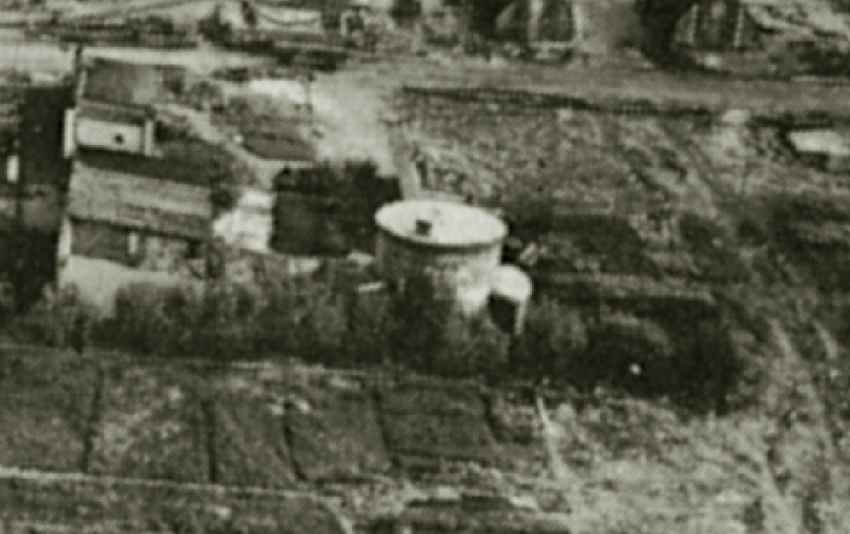 Gleich drei dieser zweigeschossigen Rundschutzbauten aus Mauerwerk mit Stahlbetonabschlussdecke / Zwischendecke wurden konzentriert hier im Bereich Grenzstraße auf Geländen von kleinen Werksbetrieben erbaut. Abgelöst wurden diese Bauten durch die bekannten eingeschossigen Stahlbetonrundschutzbauten mit Spitzkuppel. Hätte es diese Ablösung erst später gegeben, oder vielleicht gar nicht (unwahrscheinlich), ist zu vermuten, dass diverse weitere der zweigeschossigen Mauerwerksrundtürme im Stadtgebiet errichtet worden wären.