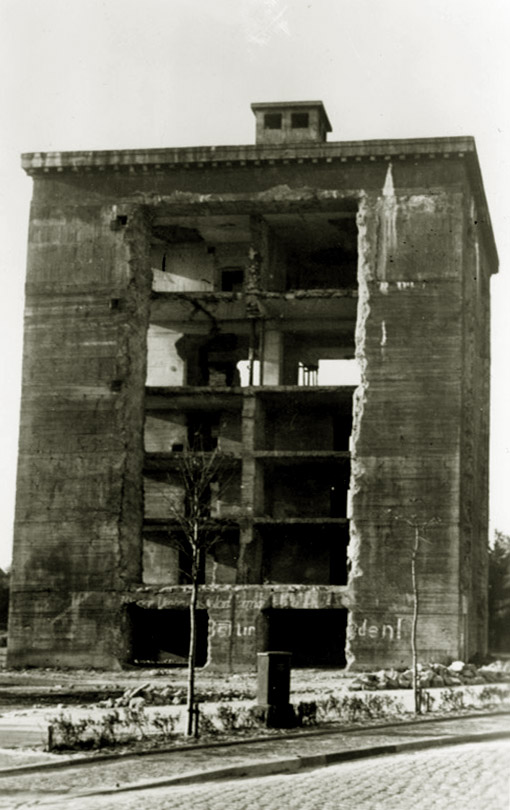 Der Luftschutzturm soll am 15.10.1944 einen Treffer erhalten haben, welcher jedoch nicht zur Durchschlagung führte. Die Reichspost sollte in den beiden oberen Geschossen mit größerer Raumhöhe eine Fernschreibvermittlung einrichten. Die unteren vier Geschosse standen der Bevölkerung offen. Inoffiziell trug der Turm den Namen "Hansa-Bunker" (wegen Standort im Hansaviertel).