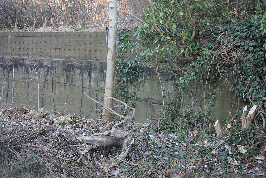 Die Restbereiche der alten Werftmauer werden nun durch die Bunkerwand per Träger gestützt.