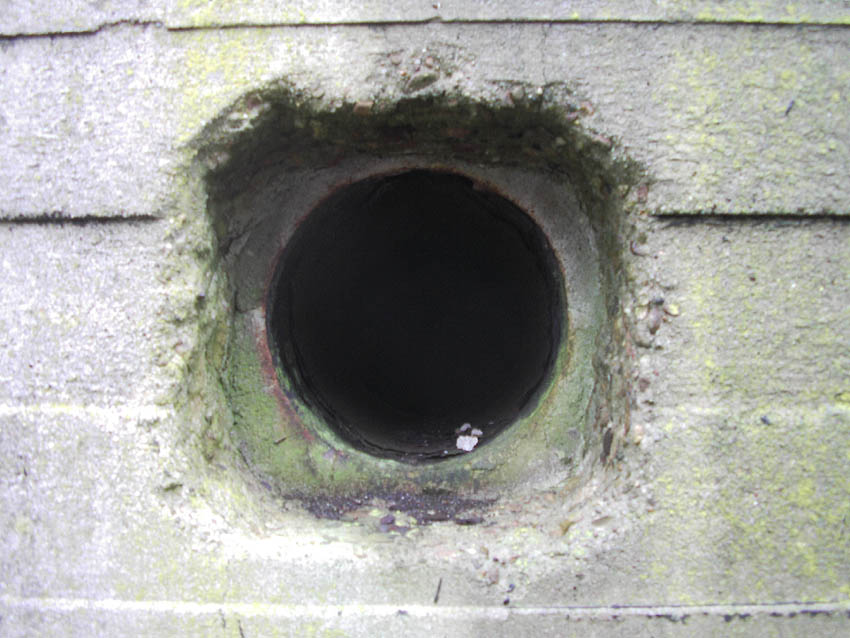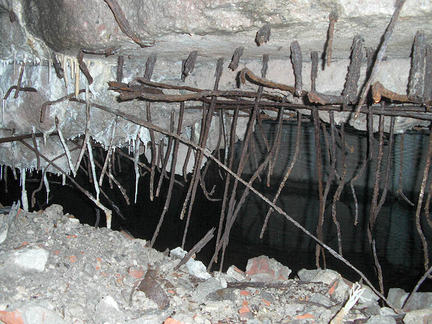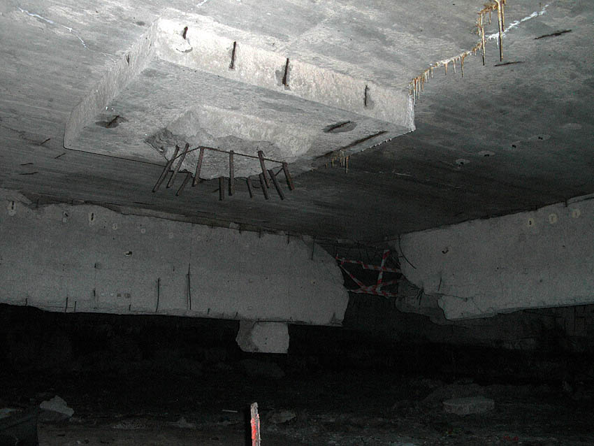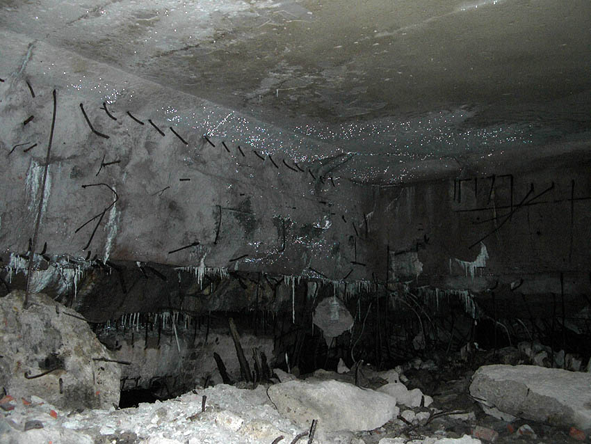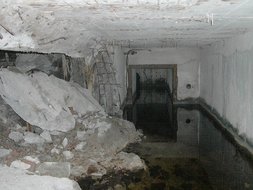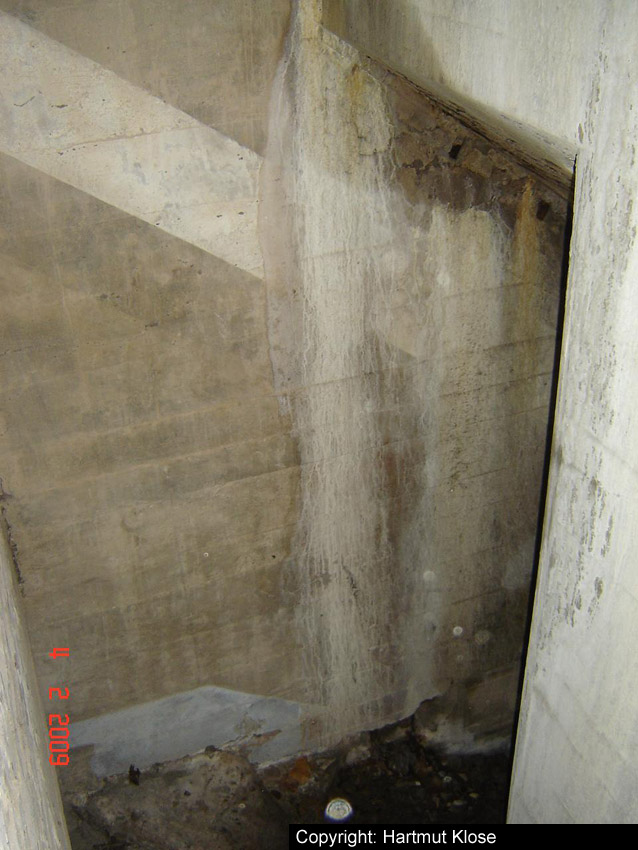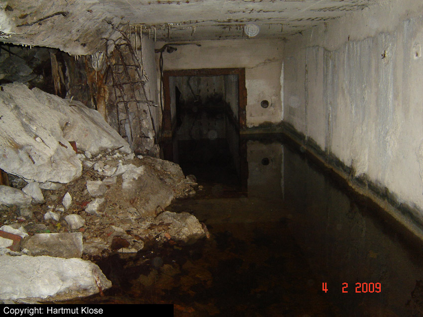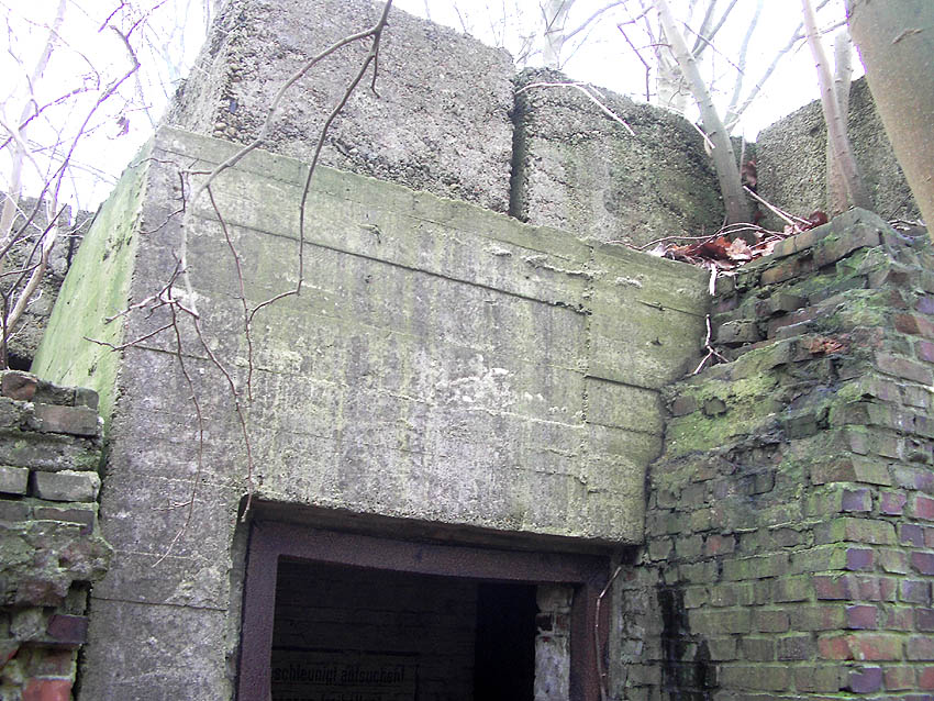 Der Südosteingang wurde mittlerweile mit vormals auf dem Dach befindlichen Betonblöcken versiegelt.