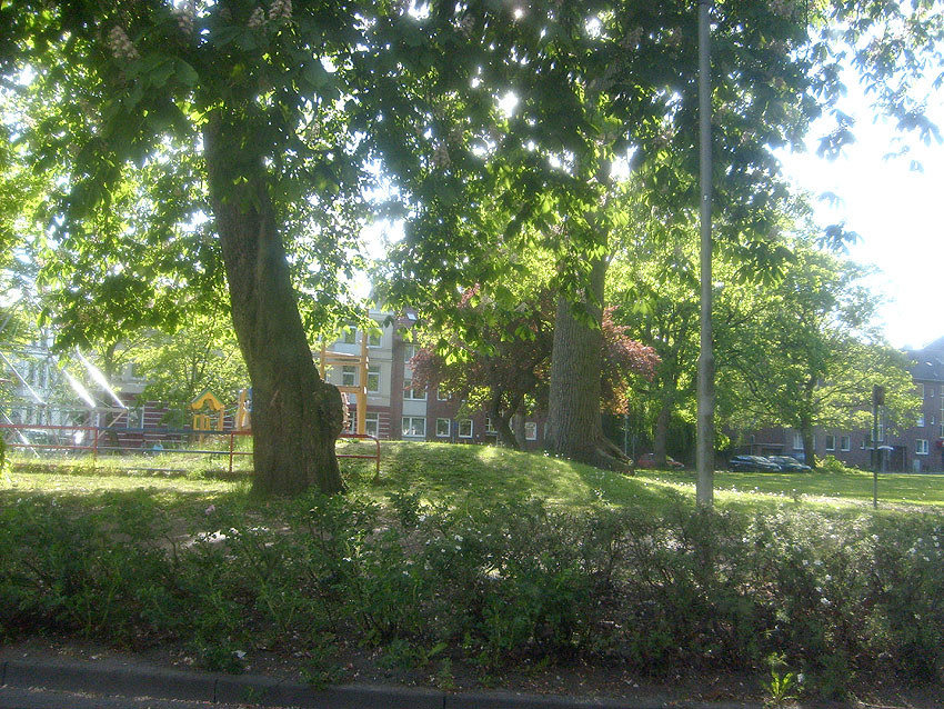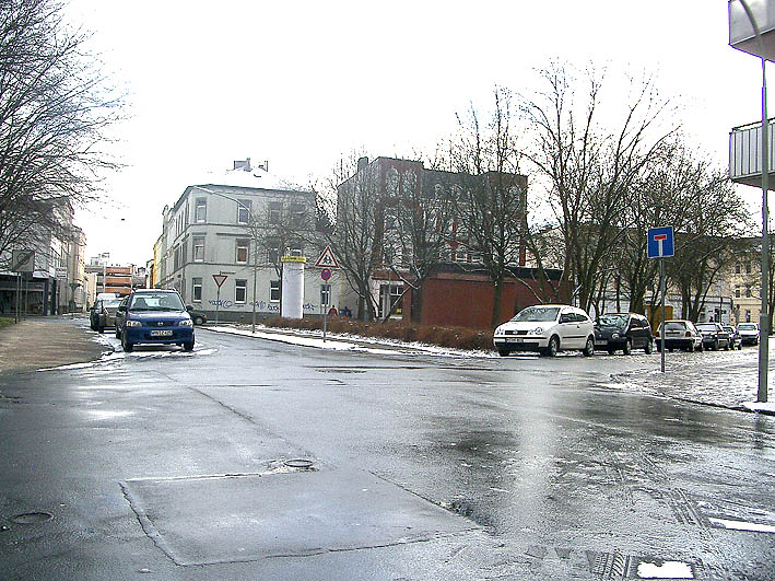 Der Standort heute. An der Litfaßsäule war die Nordwand des Bunkers...
