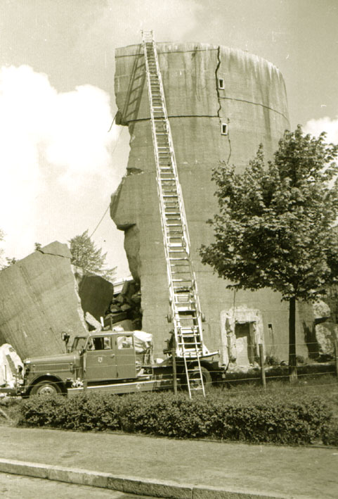 Am 7.12.1949 soll der Turm gesprengt worden sein ("Wassersprengung") und wurde danach Stück für Stück abgetragen. Andere Quellen besagen, dass der Bunker erst 1952 gesprengt wurde. Großteile der zerkleinerten Trümmer sollen danach in das Gelände der heutigen Kleingärten am östlichen Mühlenweg "entsorgt" worden sein. Selbst um das Jahr 1962 waren noch immer Reste des Turmes vorhanden, bevor die ehemalige LS-Anlage dann endgültig beseitigt wurde.