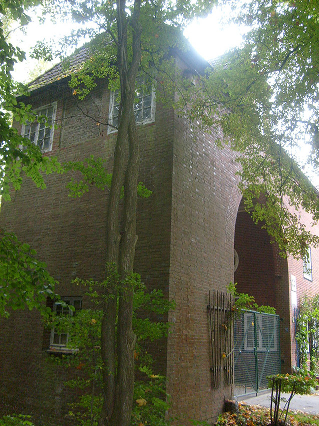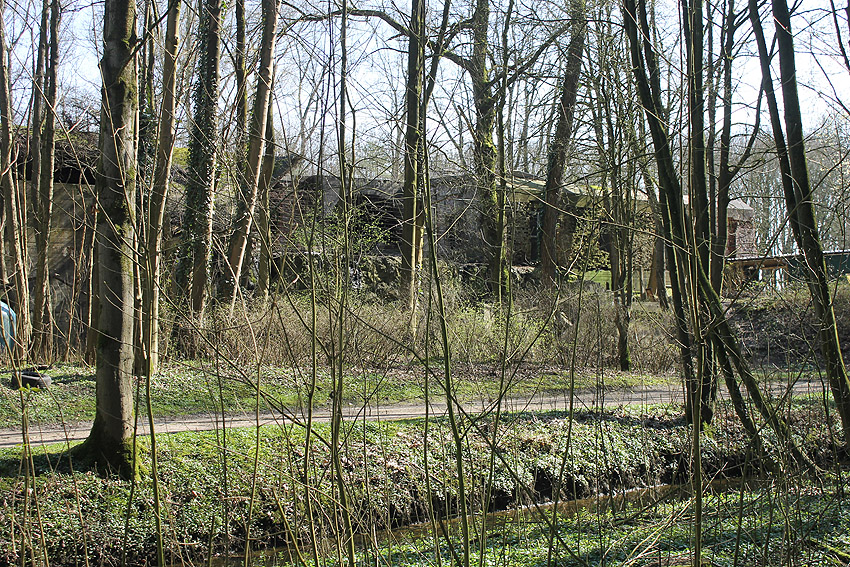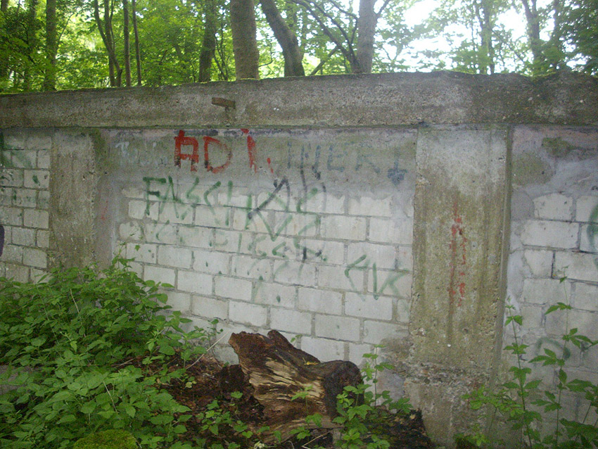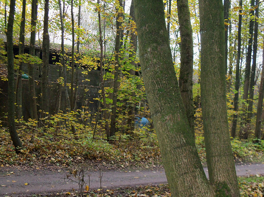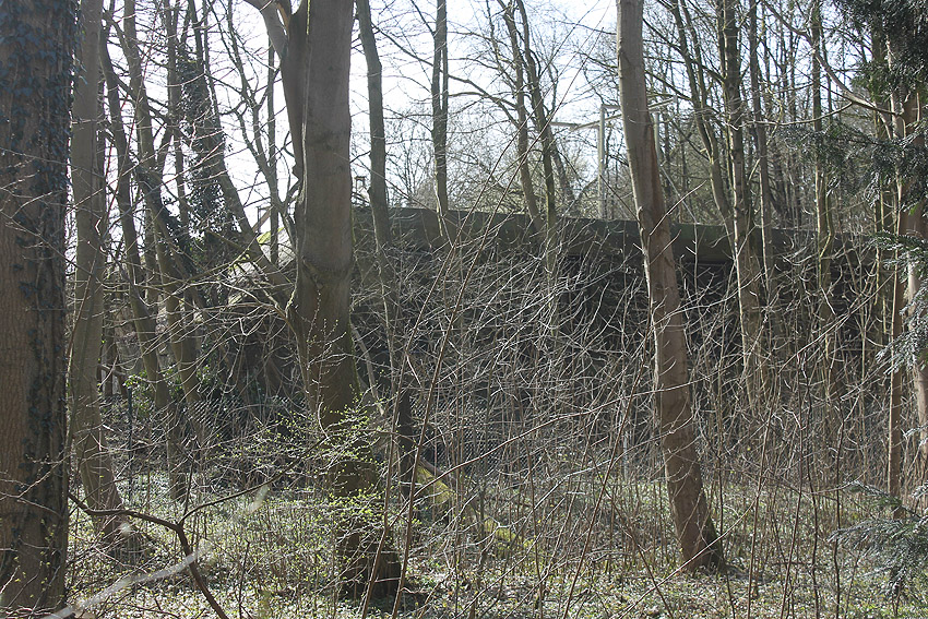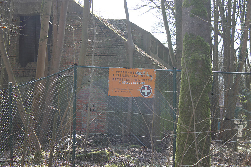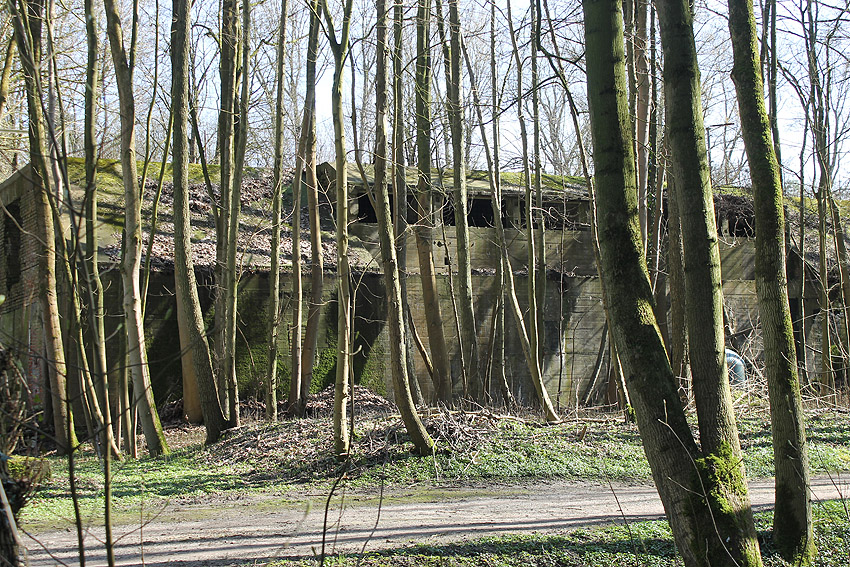 Eines der Leitstandnebengebäude im Stadtpark. Ursprünglich waren drei Gebäude dieser massiven Art und mehrere dazwischenliegende Baracken im östlichen Bereich des Geländes vorhanden, heute existiert nur noch dieses eine Bauwerk, die beiden anderen wurden in den 1990er Jahren entfernt: