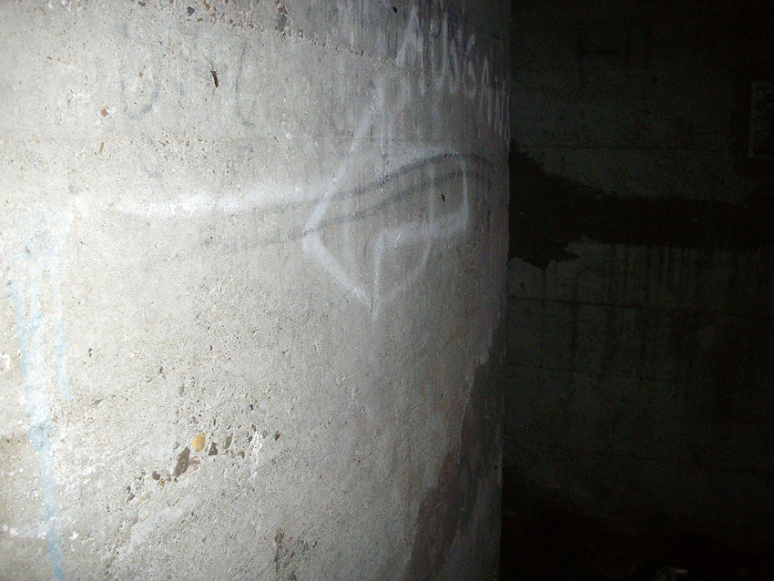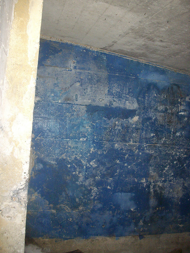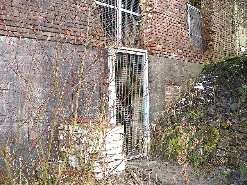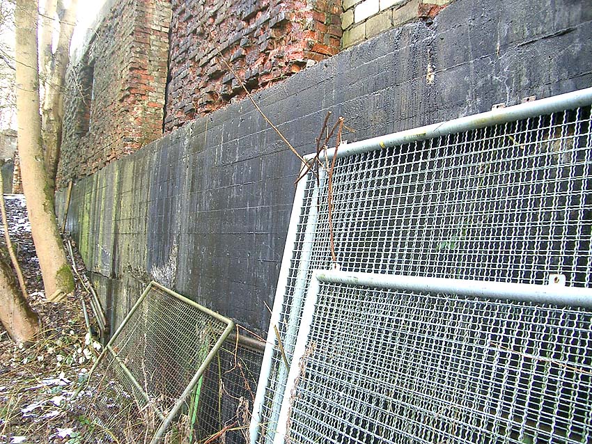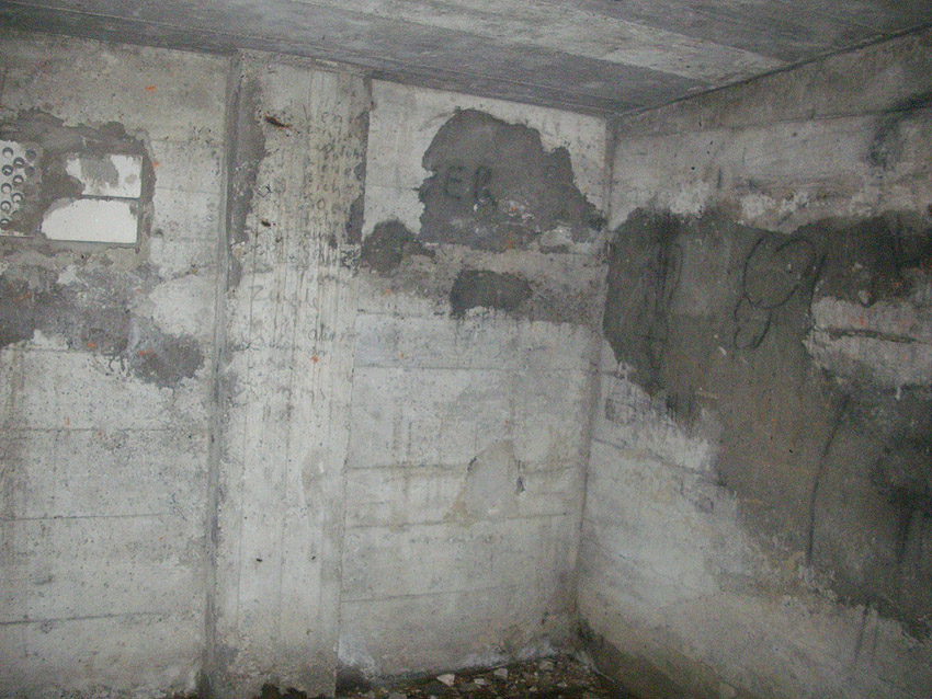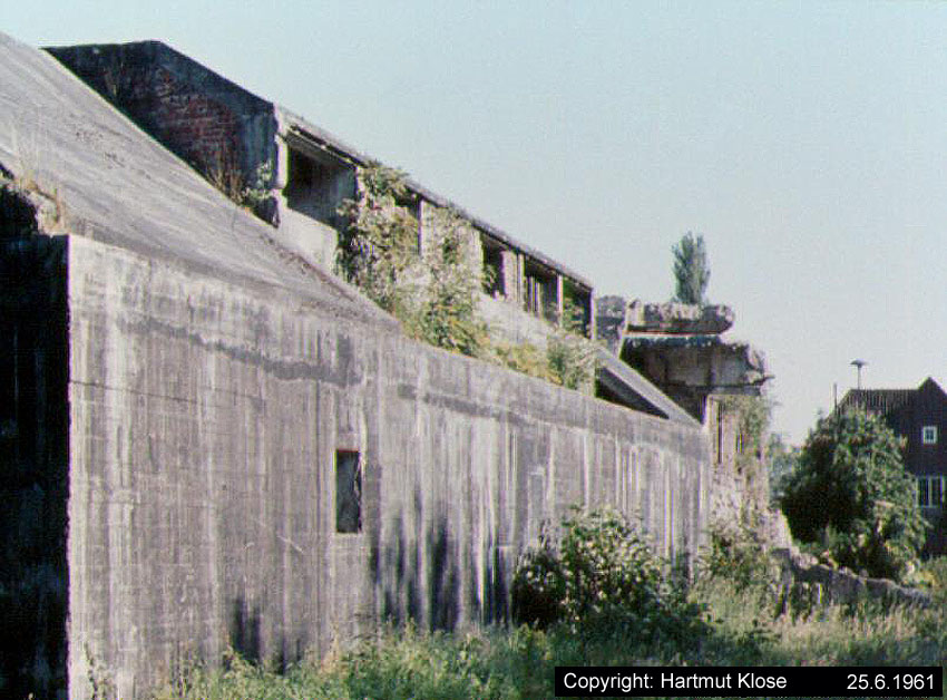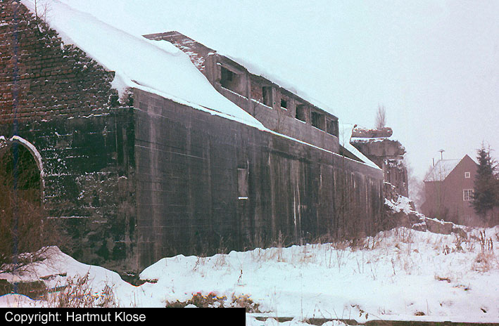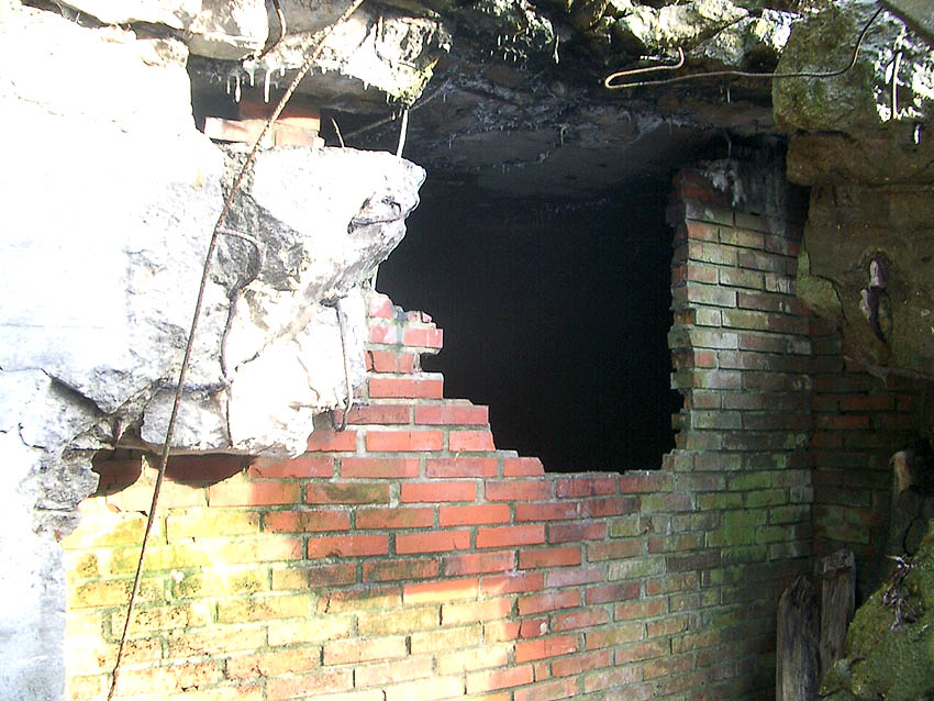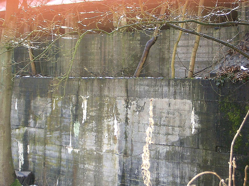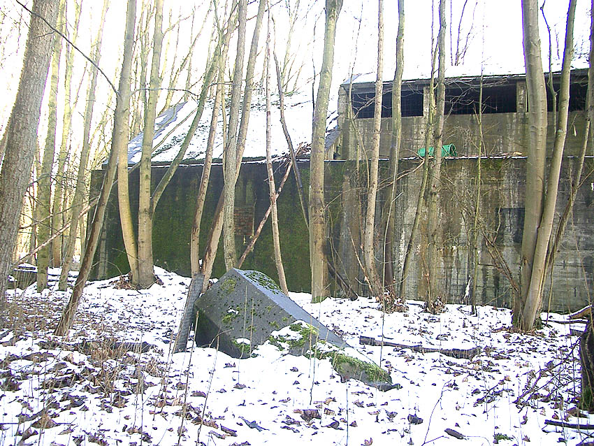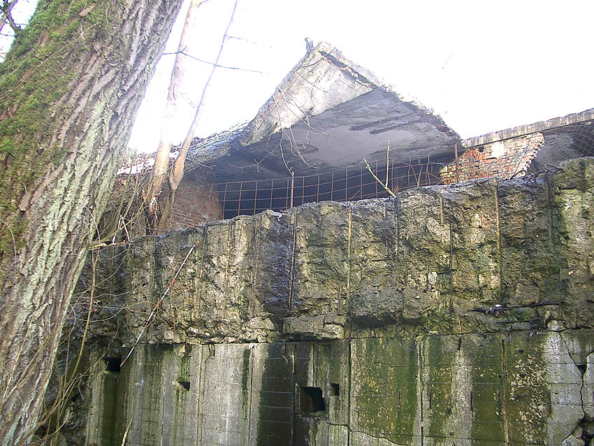 Der gesprengte Bereich an der Westfassade. Hier befand sich ursprünglich ein Anbau mit Beobachterturm und leichter Flakstellung...