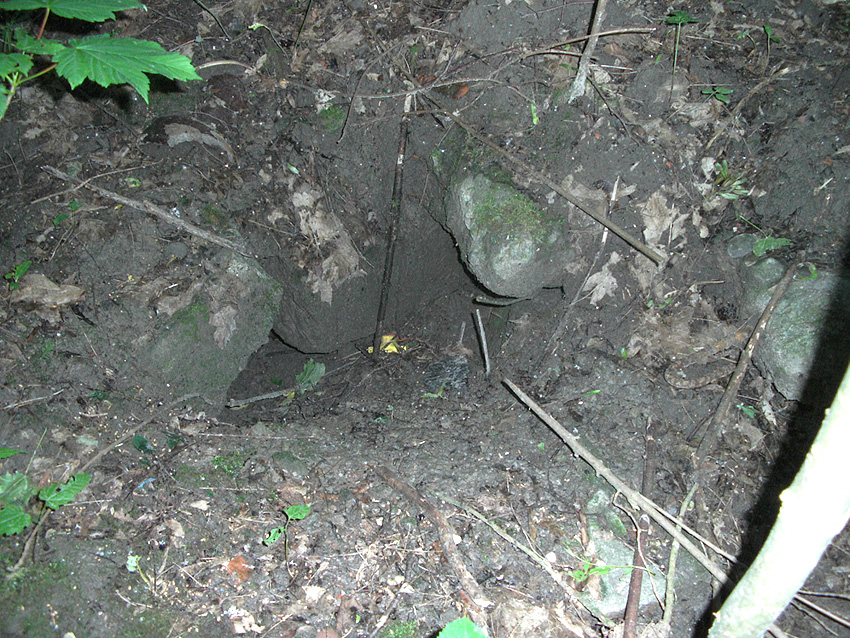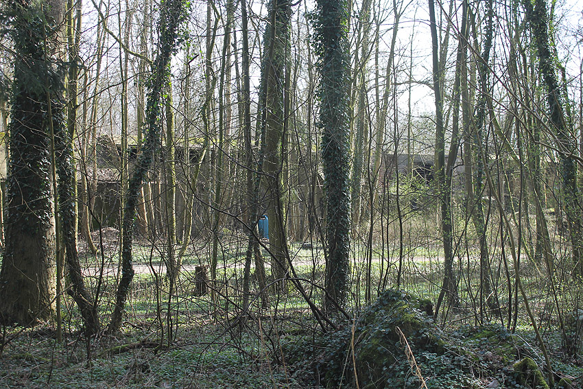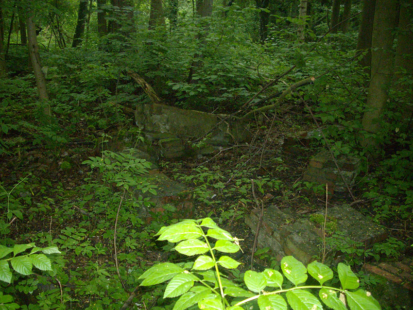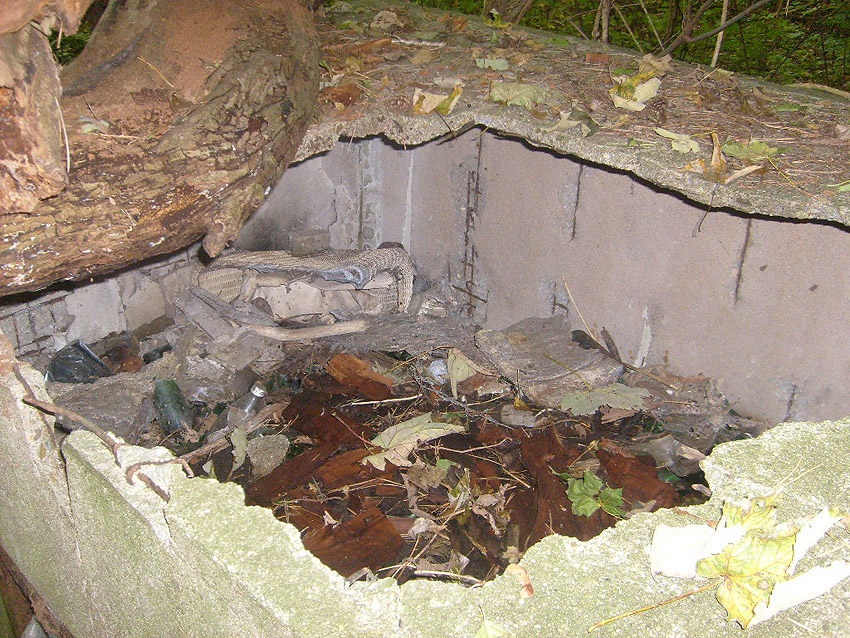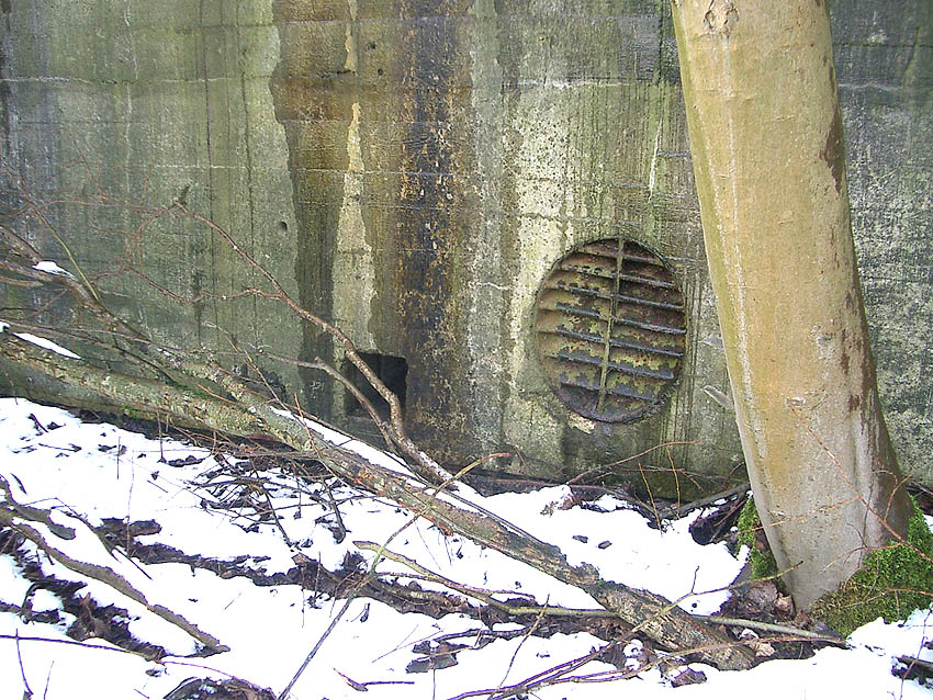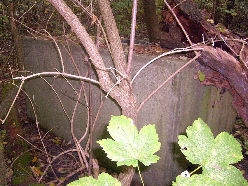 Drei alte Kanalschächte und eine teilzerstörte splittergeschützte Beton-Munitionslagerkiste im Nahbereich der ehemaligen Luftverteidigungszentrale: