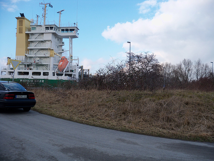 Der Standort heute. Zu erkennen ist ein Teilbereich der Mittelmole. Hier könnten noch einige Reste des Bunkers unter Erdgleiche vorhanden sein. Die erkennbare Betonfläche könnte einen Rest der Decke des Aufnahmebunkers darstellen...