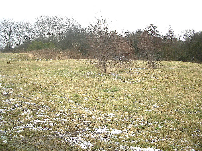 Der Standort heute. Blickrichtung 180 Grad von der anderen Seite als auf oberem Bild. Unter der Erdanhäufung könnten noch einige Reste des Bunkers vorhanden sein...