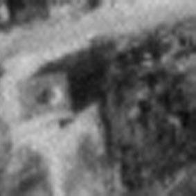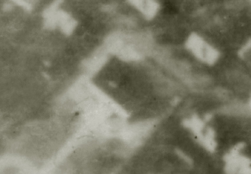 Rechts / östlich des Lüftungsturmes ist ein heller Halbkreis auf dem Dach zu erkennen. War dies ein Bombeneinschlag oder eventuell ein Tarnanstrich - um einen Einschlag auf freier Fläche vorzutäuschen?
