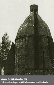 Die links ersichtliche Schutzzelle ist eine Metallsplitterschutzzelle der Bauart "Mannesmann". Diese Zelle war mit ziemlicher Sicherheit ursprünglich oben auf der Kuppel eingebettet in den Beobachtungsstand des LS-Turmes (siehe Aufnahmen des intakten Turmes).