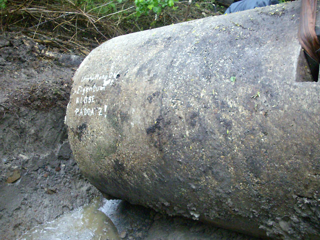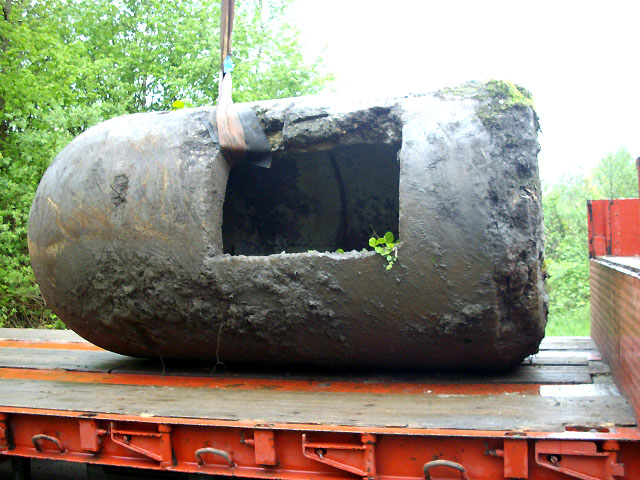 Neuester Stand: Wahrscheinlich keine Westermann-Zelle, sondern Splitterschutzzelle Fabrikat Klöckner / Klöckner-Stahlwerk Osnabrück / gefertigt im Zementwerk Piesberg / kleine Bauform / 25 cm Wandstärke / RL 3-43/41