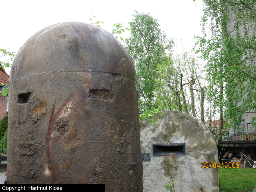 Neuester Stand: Wahrscheinlich keine Westermann-Zelle, sondern Splitterschutzzelle Fabrikat Klöckner / Klöckner-Stahlwerk Osnabrück / gefertigt im Zementwerk Piesberg / kleine Bauform / 25 cm Wandstärke / RL 3-43/41