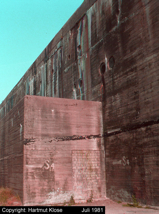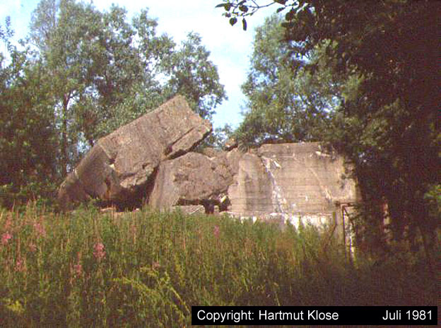 Aufnahmen des gesprengten Regelbau-Bunkers R 661 auf dem Gelände der ehemaligen UTO-Werft / Westwerft. Der Bunker ist heute im fast vollkommen überschütteten Zustand noch immer vorhanden. Aufnahmen aus den Jahren 1981 und 1983.