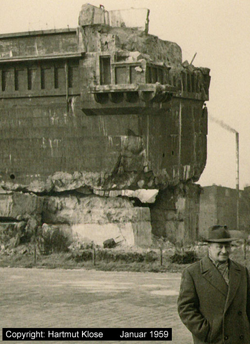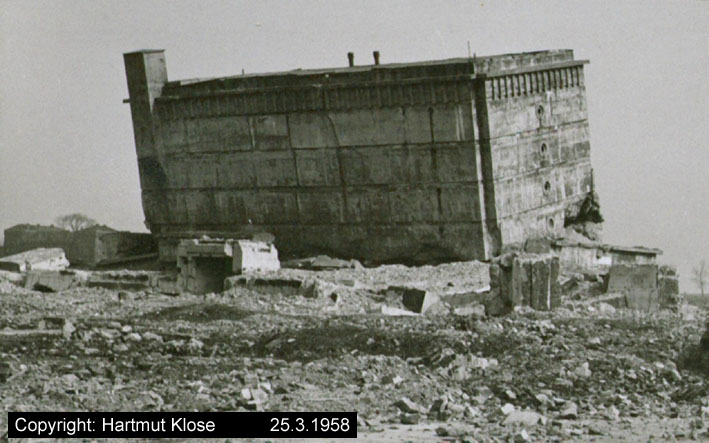 Aufnahmen des gesprengten Befehlsbunkers auf dem ehemaligen Bauwerftgelände. Aufnahmen aus den Jahren 1955, 1958 und 1959.