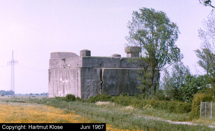 Aufnahmen des Truppenmannschaftsbunkers 1100 in Langewerth. Der Bunker wurde nach dem Krieg gesprengt und sackte im Bereich des Erdgeschosses komplett ein. Noch heute ist die Ruine vorhanden. Aufnahmen aus den Jahren 1967 und 1972.