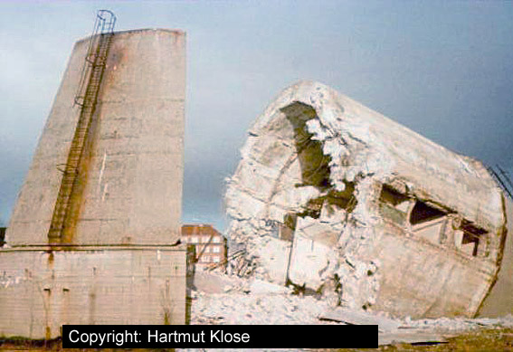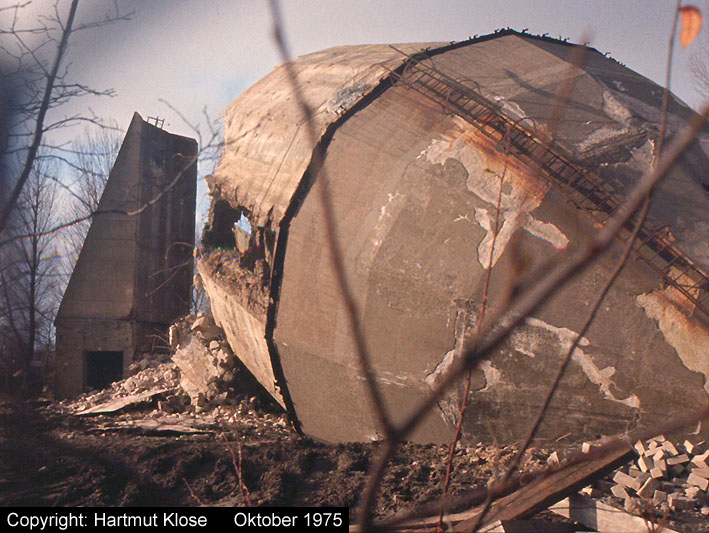 Aufnahmen des gesprengten Luftschutzturmes am Bahnhof Sande. Der Turm ist in diesem Zustand noch immer vorhanden. Er dient dem Alpenverein als Kletterturm. Aufnahmen aus dem Jahre 1966.