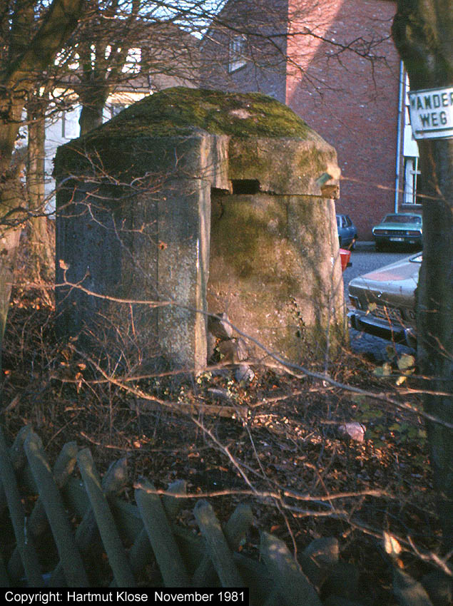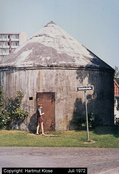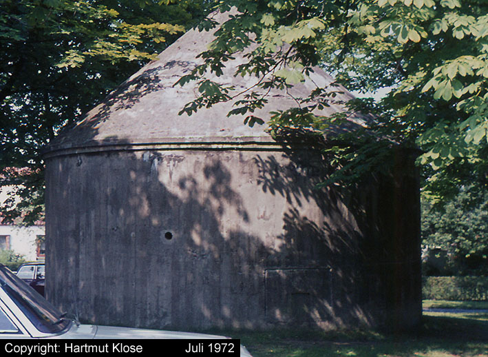 Aufnahme des kleinen Rundturmes Holsteinstraße in der Stadtparkkolonie. Auch dieser Bunker ist noch immer vorhanden. Aufnahme aus dem Jahre 1972.