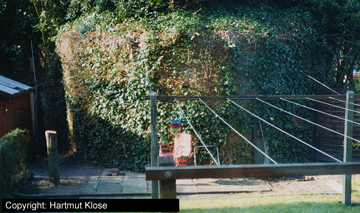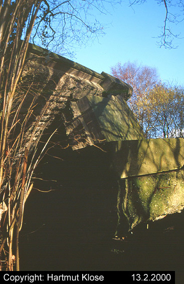 Aufnahme eines kleinen Rundturmes an der Marienstraße. Der Bunker ist noch vorhanden, aber inzwischen vollkommen hinter Efeu verdeckt. Aufnahme wohl aus dem Jahre 1997.