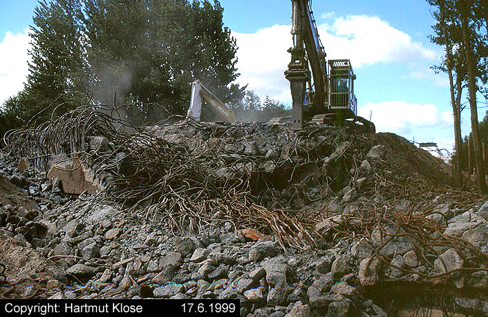 Aufnahmen des Schleusentorbunkers 4 der ehemaligen 3. Einfahrt während des Teilabrisses. Heute befindet sich genau dort die erweiterte Straßenführung. Aufnahmen aus dem Jahre 1999.