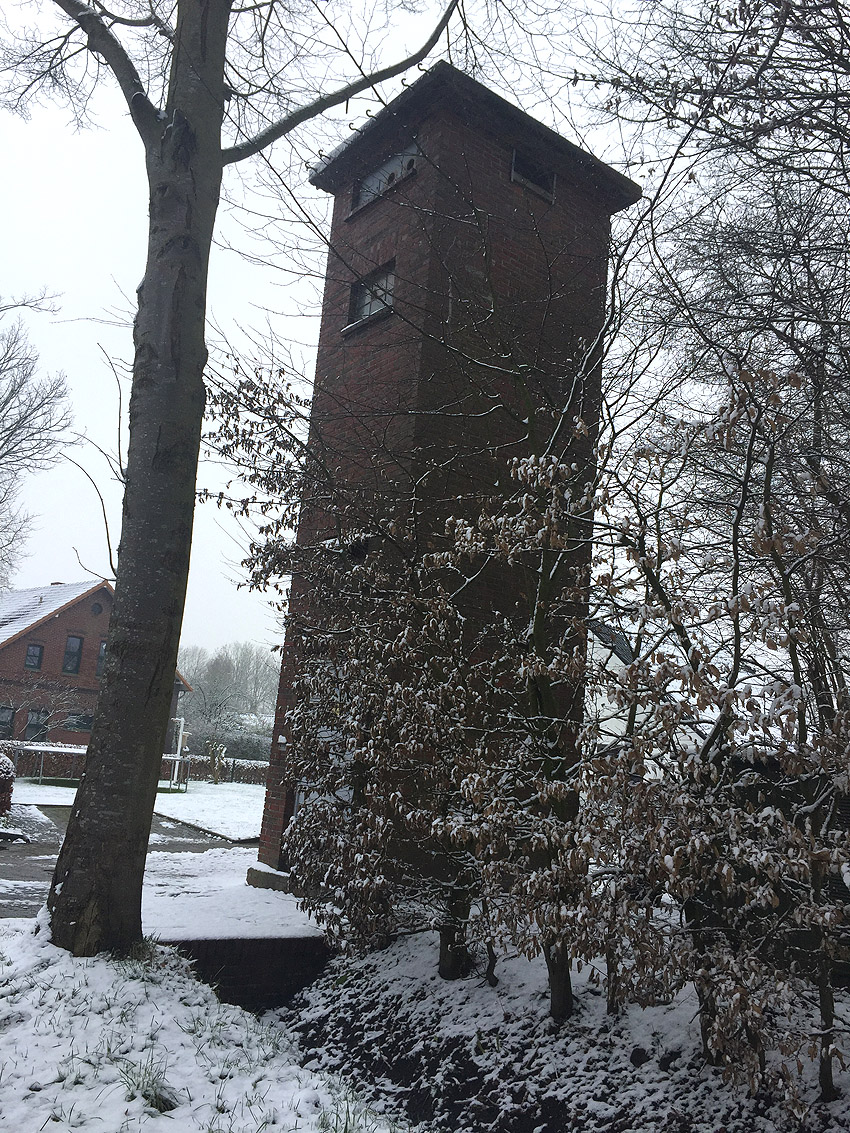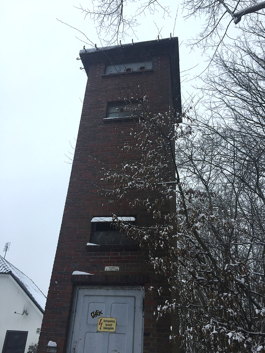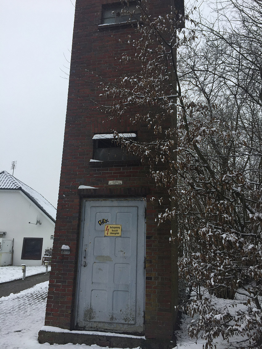 Zur Anlage gehörender Trafoturm unweit südwestlich der Batterie in Driefel (Stromversorgung):