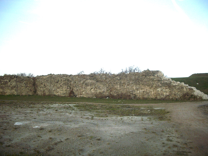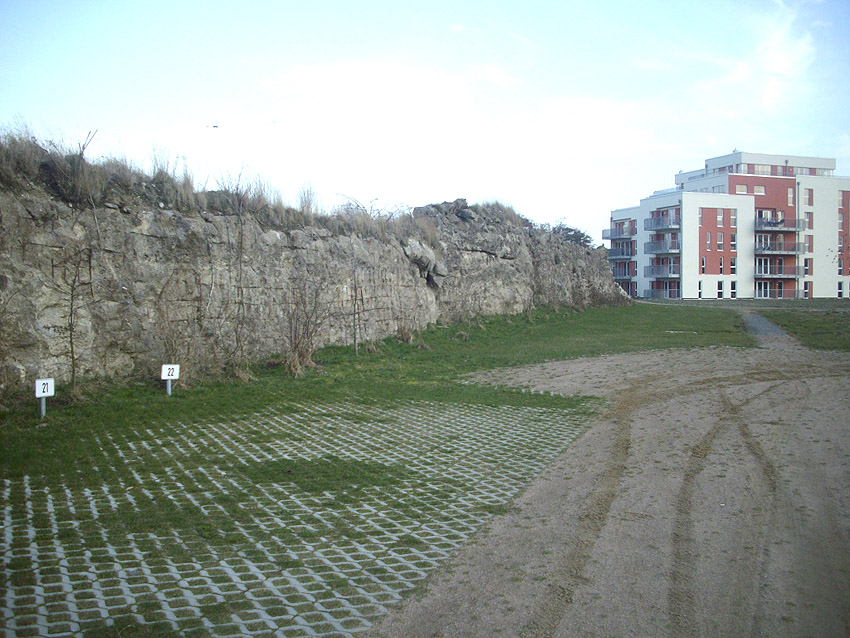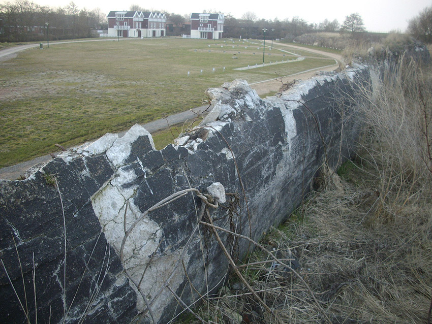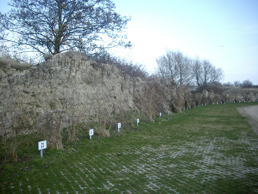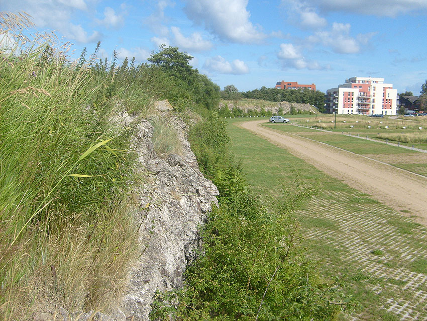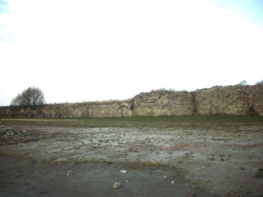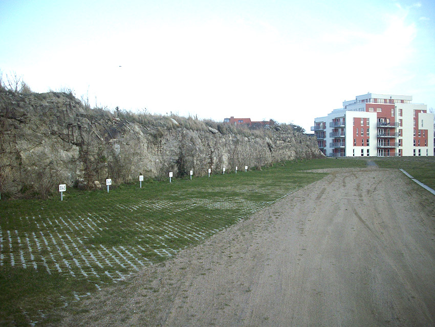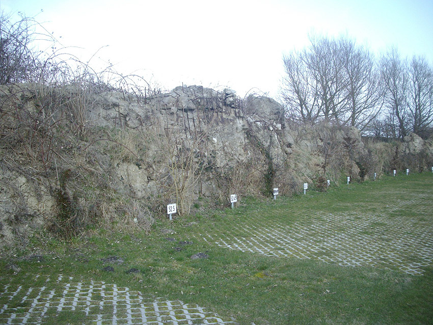 Nun sind die gesamten Reste der Nordflanke der ehemaligen Verbunkerungen klar erkennbar. Diese bleiben weiterhin erhalten und stellen nun eine Art künstliche Klippe dar. Die gewaltige Betonfront erstreckt sich von Westen nach Osten über fast 250 Meter hinweg...