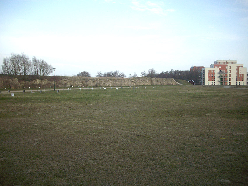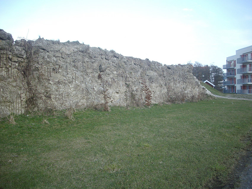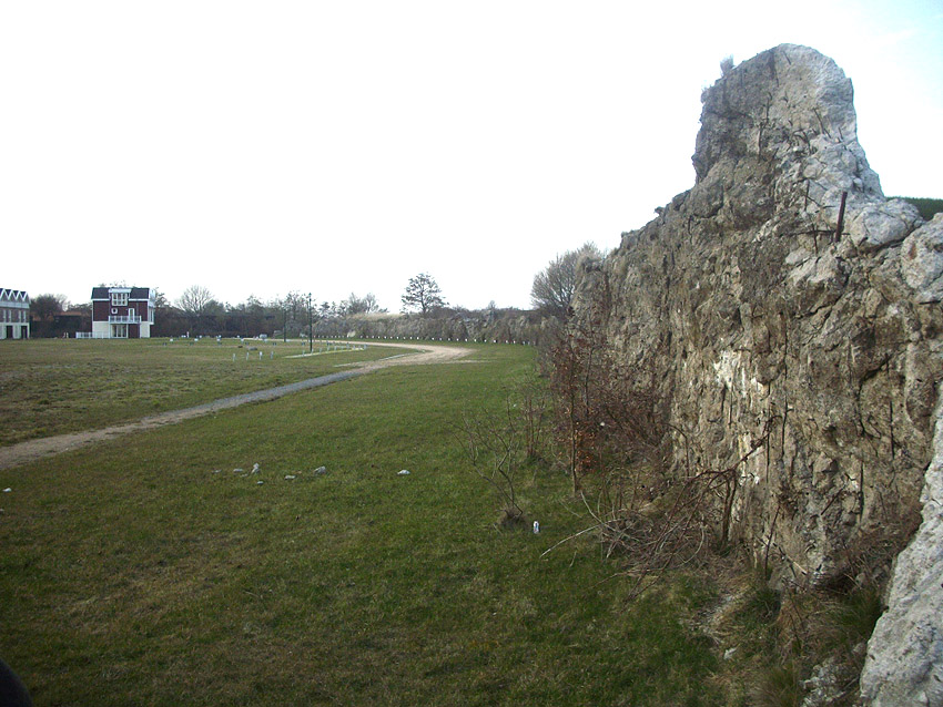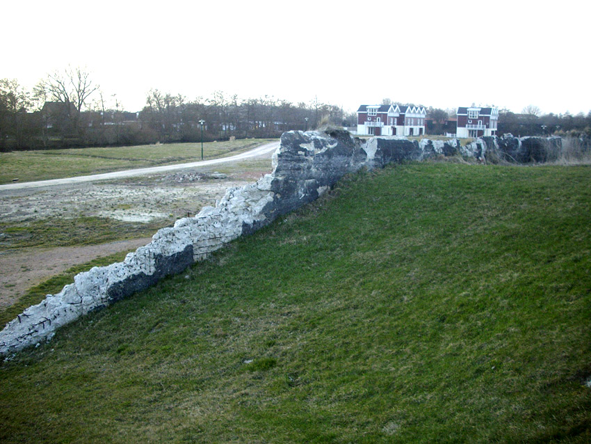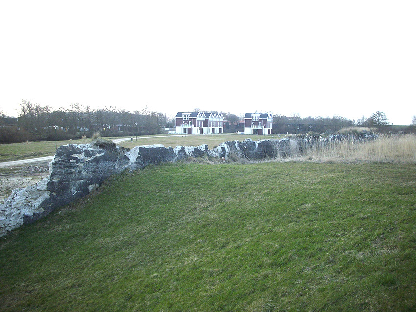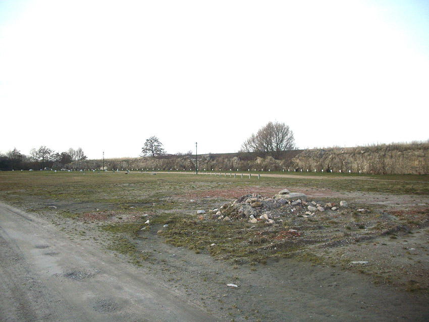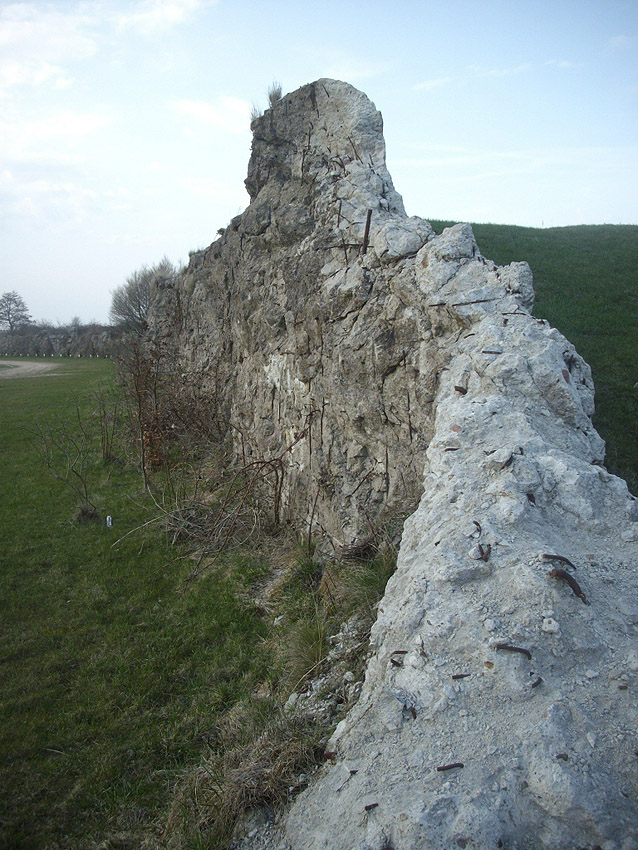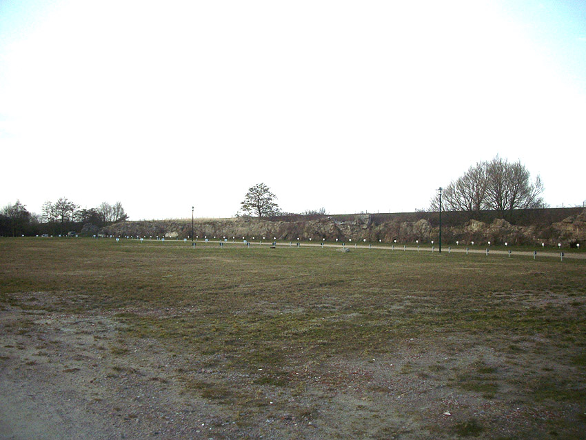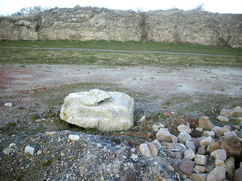 Nun sind die gesamten Reste der Nordflanke der ehemaligen Verbunkerungen klar erkennbar. Diese bleiben weiterhin erhalten und stellen nun eine Art künstliche Klippe dar. Die gewaltige Betonfront erstreckt sich von Westen nach Osten über fast 250 Meter hinweg...