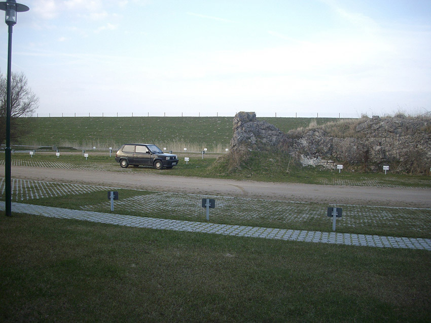 Entgegen der Vermutung bei unserem letzten Besuch 2008 ist doch mehr erhalten geblieben, als zunächst gedacht. Vorgelagertes Erdreich und die mit Erde zum Verwechseln ähnliche Farbe des Betons während der schlechten Witterung beim letzten Besuch hatten einen falschen Eindruck erweckt...