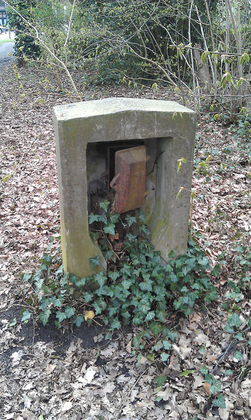 Im Bereich Eidenring / Kleiberweg südwestlich von Aschhauserfeld in Richtung Kayhauserfeld steht diese splittergeschützte Kabelsäule. Sie könnte im Zusammenhang mit der Flakstellung Kayhauserfeld stehen. Sie wird dann eventuell der Telefon- oder Luftnachrichtenverbindung zur Stellung gedient haben.