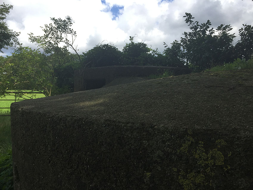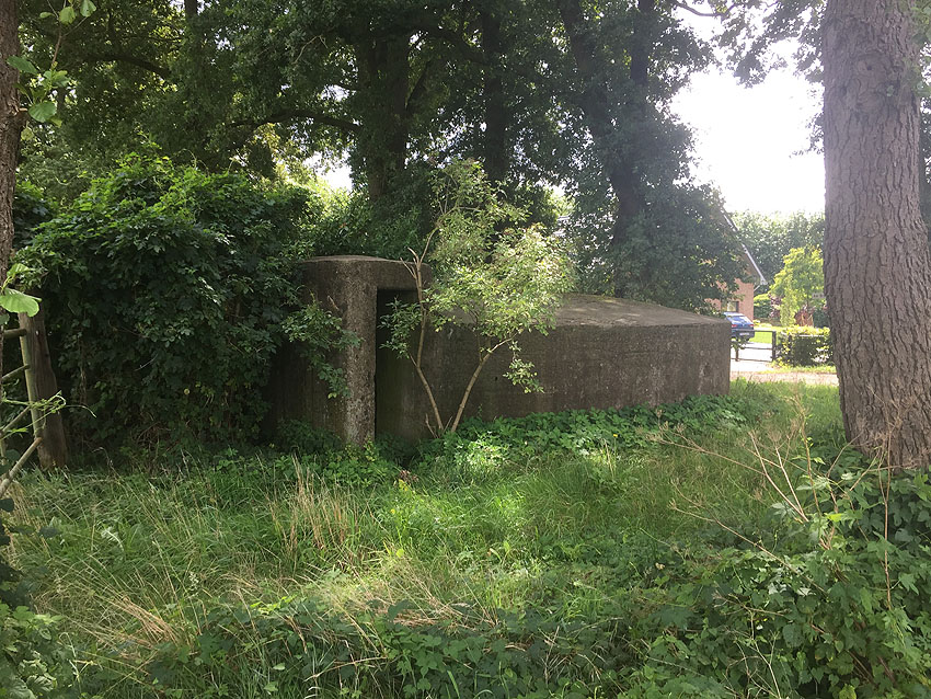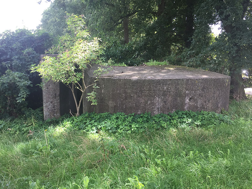Diese kleinen Rundschutzbauten wurden im Bereich Stuhr gehäuft errichtet. Sie werden so gut wie baugleich zueinander sein und weisen auch starke Ähnlichkeiten zu einem Rundbunkertyp auf, der im nahen Delmenhorst realisiert wurde. Dieser kleine Rundschutzbau hier ist fast zur Hälfte in die Erde eingelassen und identisch mit jenem am Friedhof Stuhrer Landstraße 136 in Stuhr.
