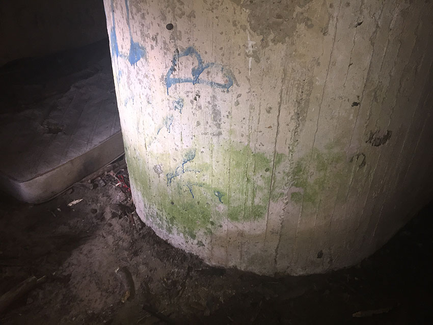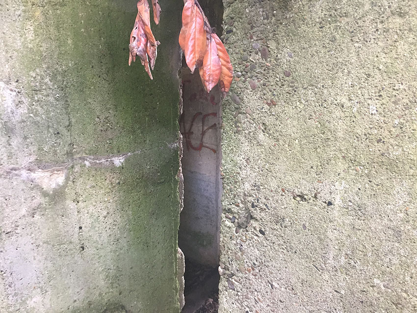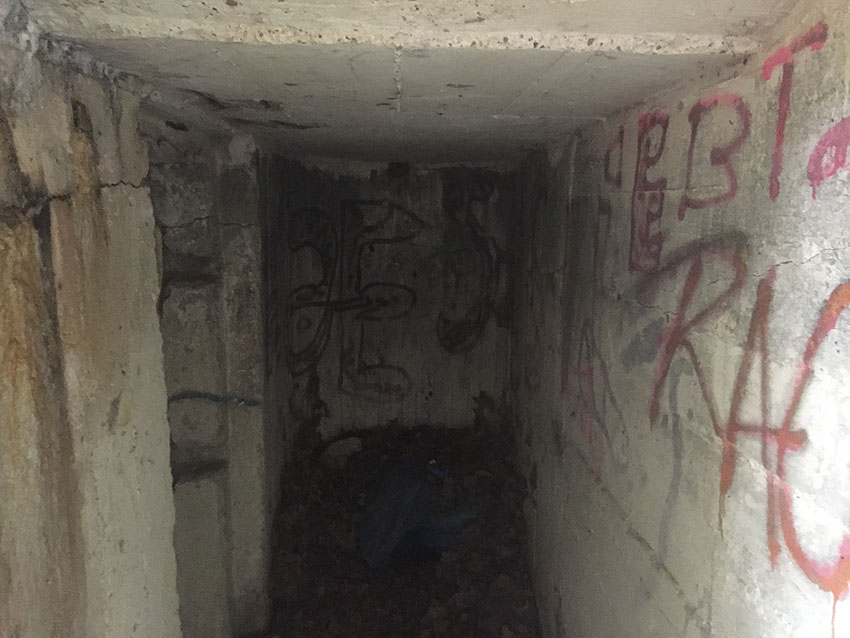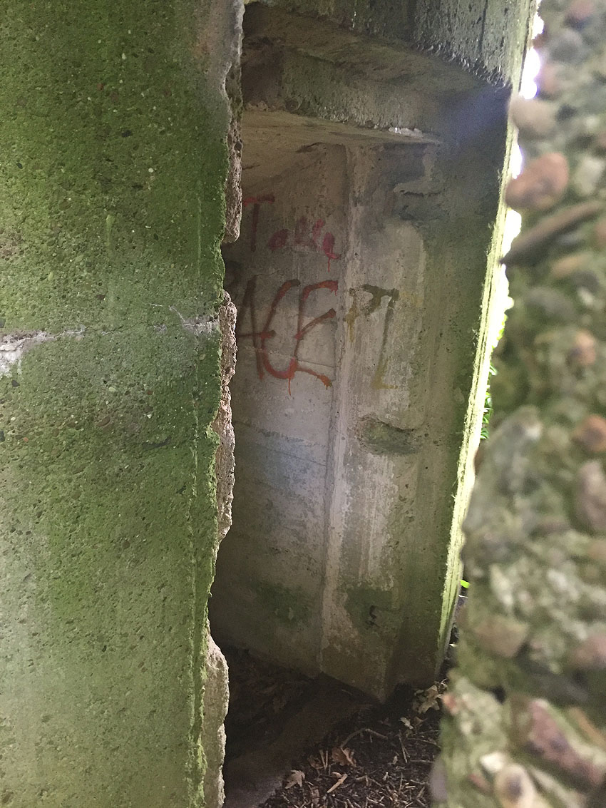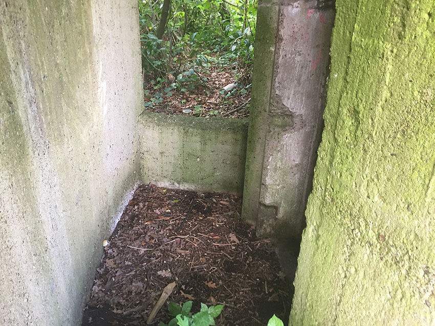Hier befand sich ursprünglich der Notausstiegsblock. Aufgrund der Demilitarisierungsmaßnahmen dürfte er bald nach dem Krieg entfernt worden sein...
